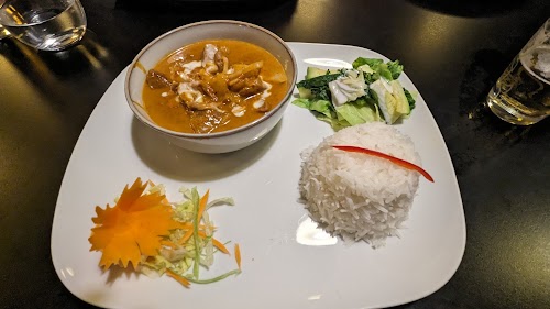 Went for dinner this evening with my family. had a lovely meal. the green curry, penang curry and the massaman were very good. the grilled duck was good but a bit dry so was the spare ribs. veg spring rolls was very good. attentive but unobtrusive service. a place worth going if you want good thai food.