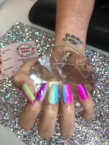 My first visit to the new hello nail salon and only by chance walking past that a young lady came out and offered me a card, well why not try it out as my nails were a mess, i normally go to the other nail bar but am so pleased with the final set that i will definitely be going back. the young lady and i apologise as i did not ask her name, was very professional, she made sure she spoke to me and was very polite in conversation. her work was fast and she paid attention to detail making sure that each step of the way that i was happy with what she had done. the young lady was very good with her attention to detail and on the whole really lovely. all the ladies out there should give hello nails a try as her prices are so good the salon is fresh and very clean and mostly it is a young one trying to make her dream grow. i will go back again as was made welcome and the final finish was just what i asked for. thank you so much, i wish you every success and will see you soon for a back fill. well done you will do amazing xx alexis x x